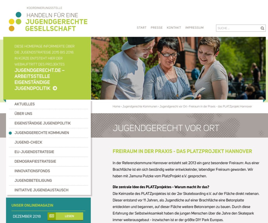 - https://archiv.jugendgerecht.de/jugendgerechte-kommunen/jugendgerecht-vor-ort/freiraum-in-der-praxis-das-platzprojekt-hannover/