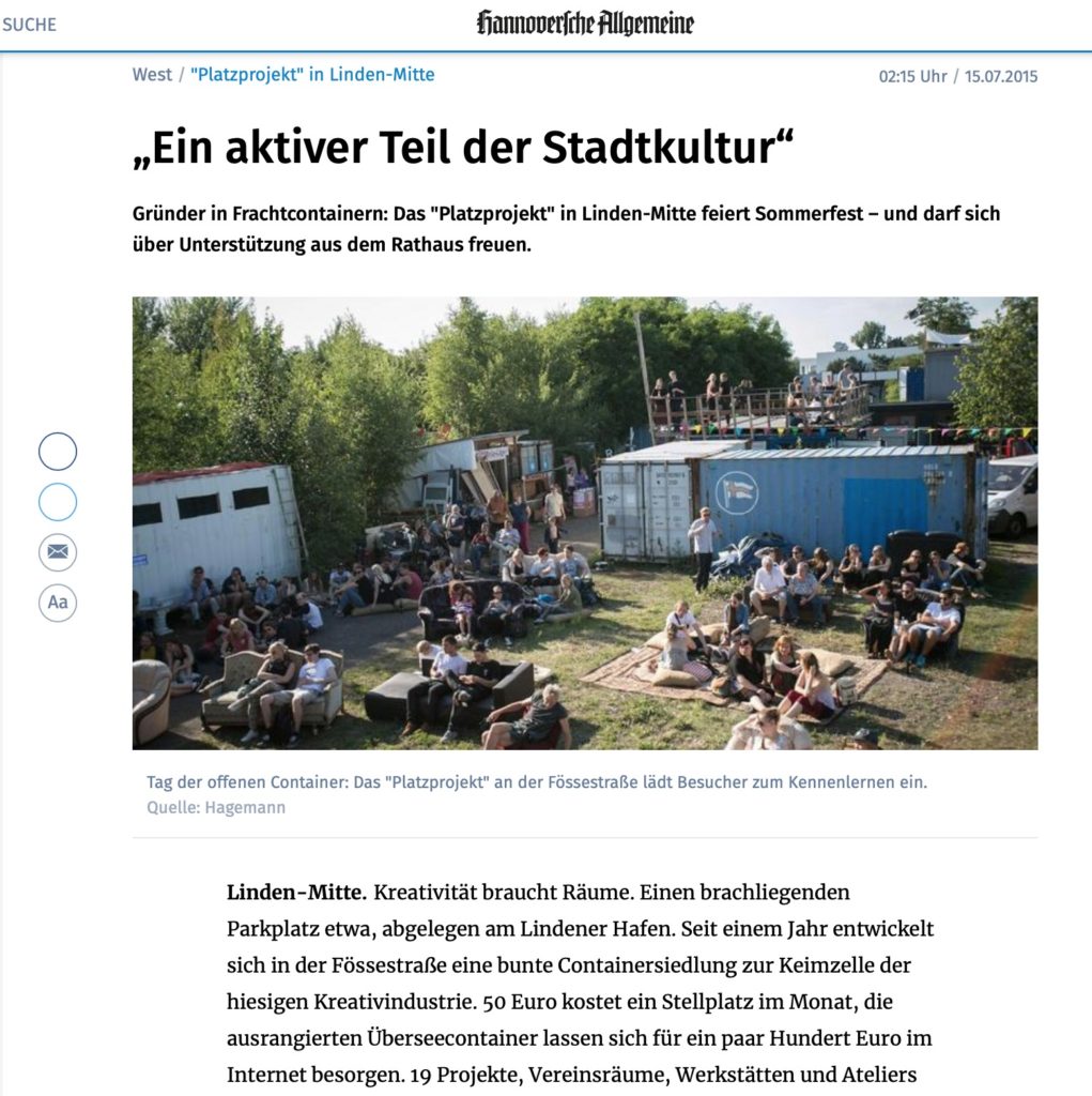 - https://www.haz.de/lokales/hannover/platzprojekt-in-hannover-linden-startet-mit-flohmarkt-und-festivals-53J5HSIECJH3PLGYBOUXC6Z66Y.html