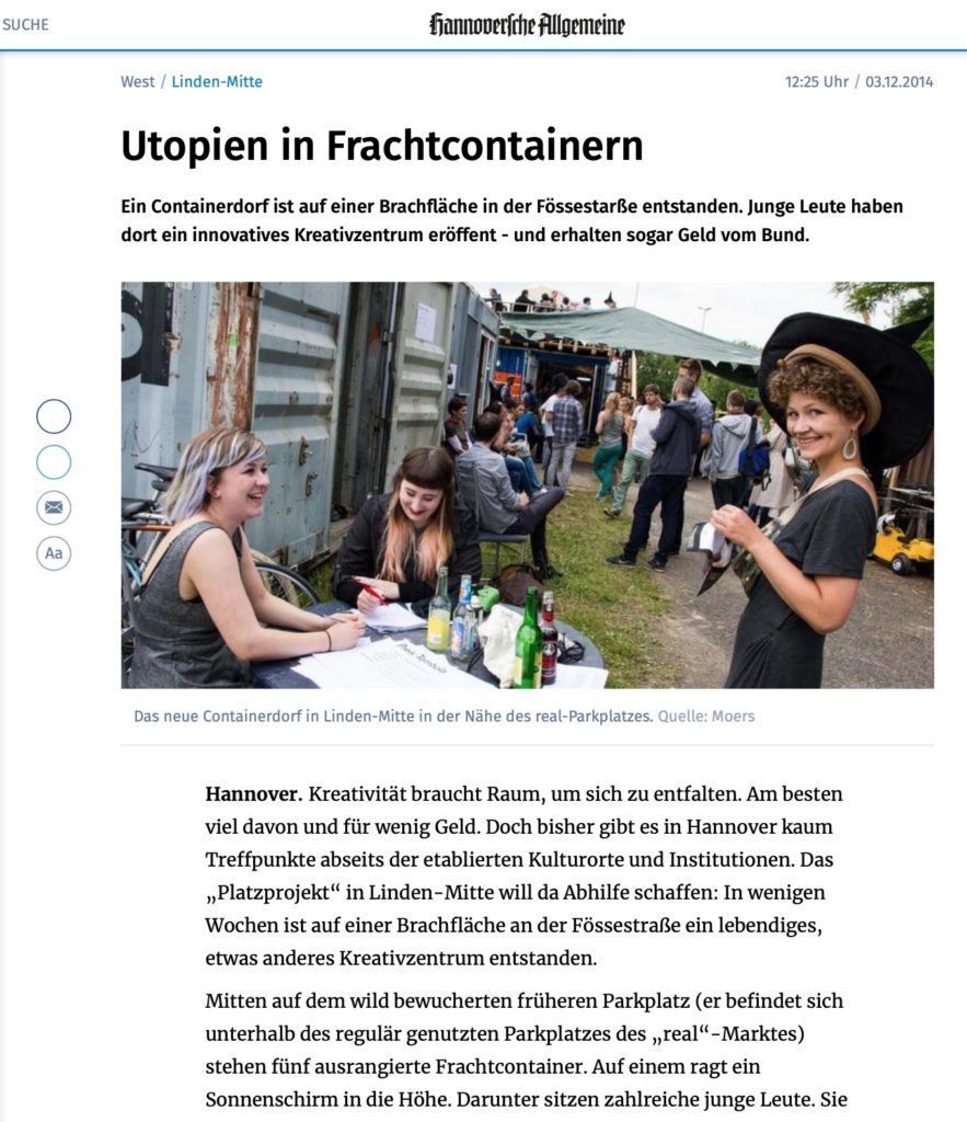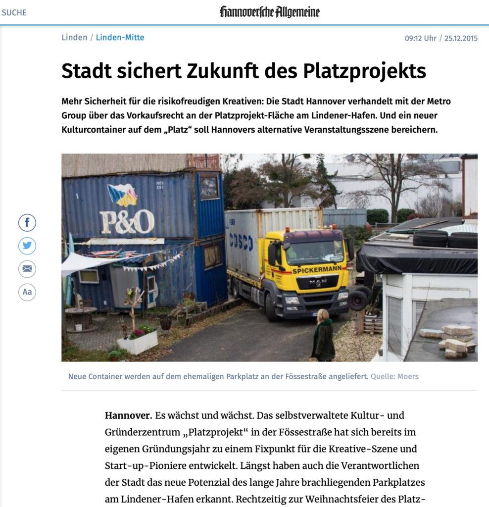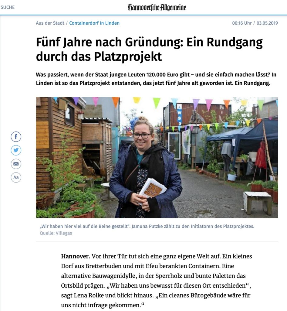- https://www.haz.de/lokales/hannover/fuenf-jahre-nach-gruendung-ein-rundgang-durch-das-platzprojekt-NQDRVPGBQD7QAEBHOJWCCZ7JF4.html